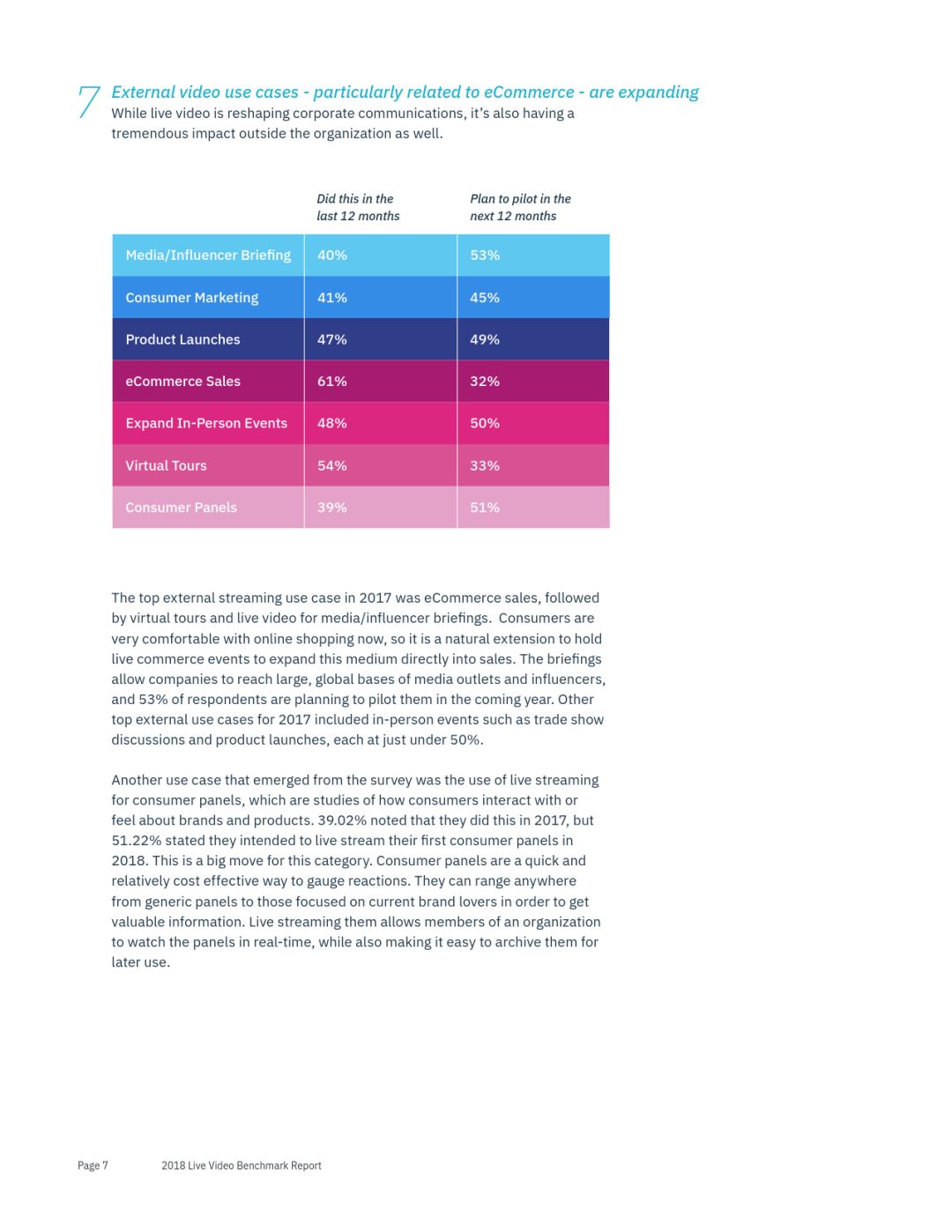 面向外部的關於電子商務銷售、虛擬旅遊和產品發佈方面的直播視頻也十分受歡迎