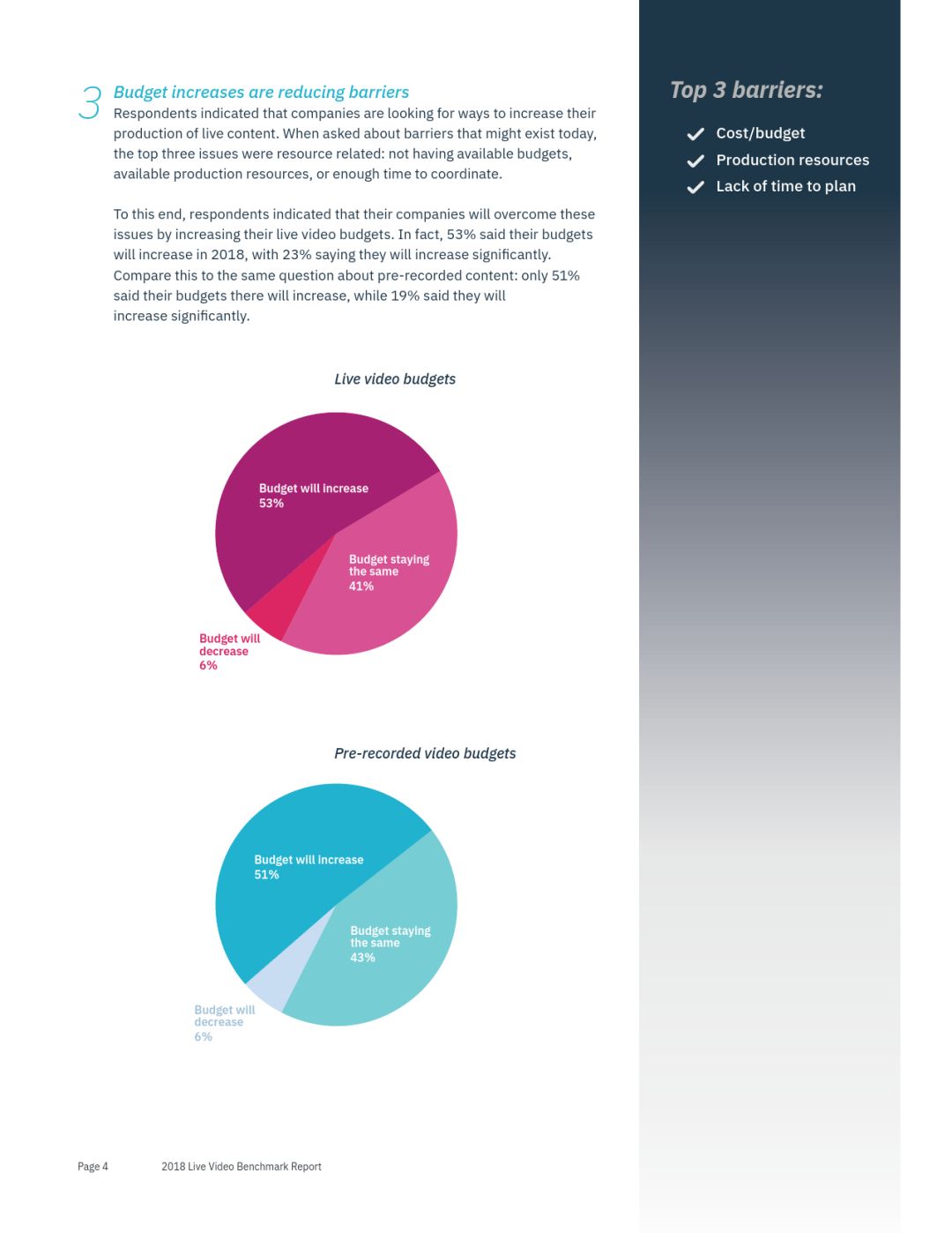 儘管資源方面的挑戰依然存在 但超過半數的受訪者計劃增加今年直播視頻預算