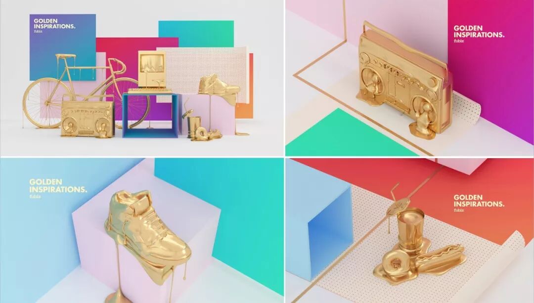 日常事物穿上金色的衣服 ,極致的金屬材質異化與平面元素搭建的空間結合,模擬出來的真實感極具視覺衝擊力。